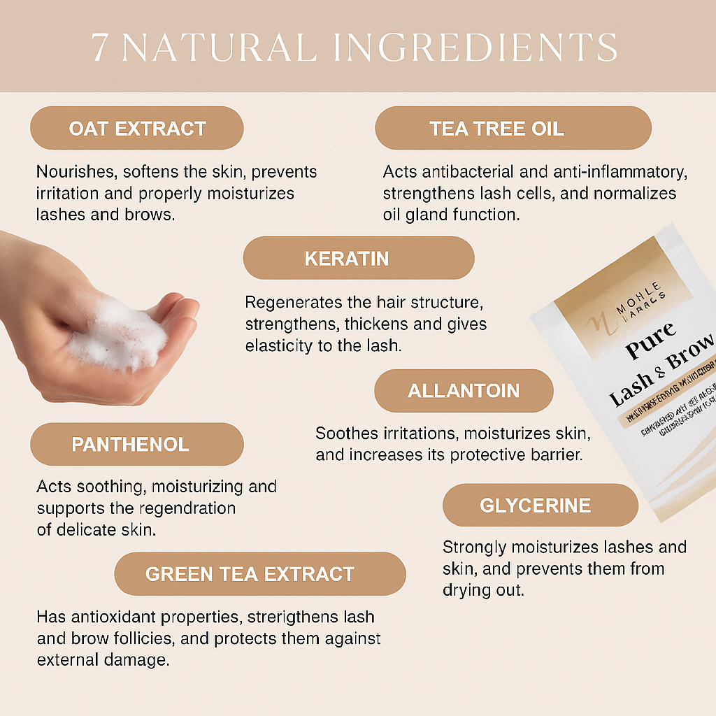 Pure Lash&Brow by Noble Lashes contains seven natural ingredients, designed to cleanse and nourish lashes and brows every day.