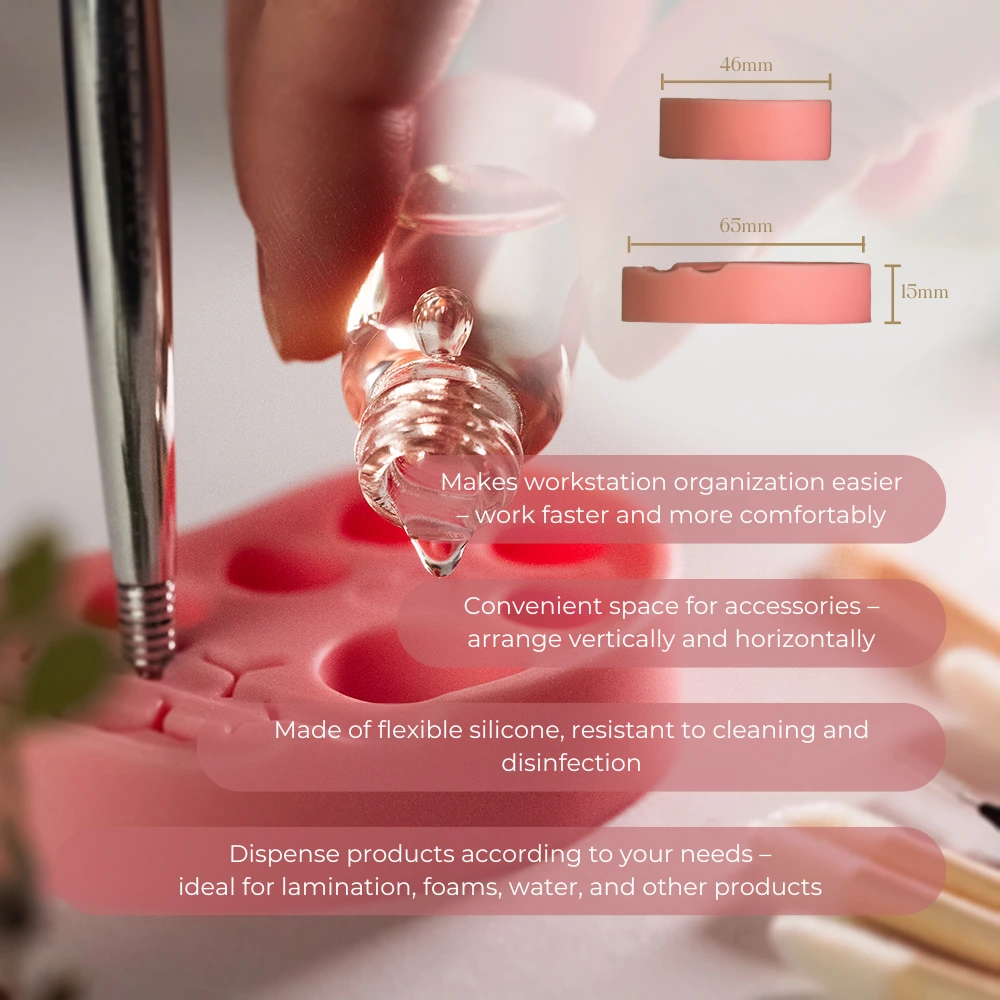 The multifunctional silicone palette is perfect not only for mixing products but also for accurately measuring small amounts of products and working with glue or tint. This essential accessory helps you keep your workspace tidy, enhancing comfort and efficiency during treatments. It’s perfect for both beginner and experienced stylists who value precision, organization, and convenience.